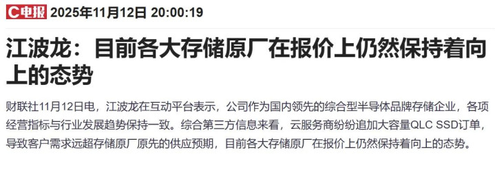 6)江波龙:目前各大存储原厂在报价上仍然保持着向上的态势。